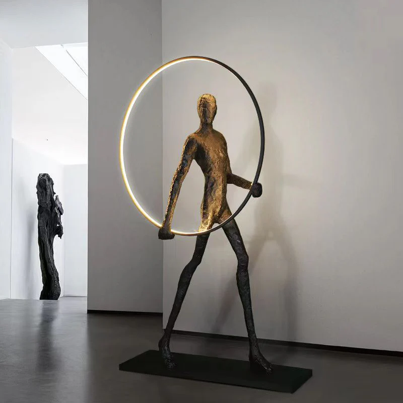 The Momentum Illuminated Sculpture is a striking fusion of art and light, embodying movement, balance, and modern sophistication. Crafted with a textured bronze-finish human figure in mid-stride, this sculptural masterpiece symbolizes progress, ambition, and resilience. The figure is seamlessly intertwined with a sleek, illuminated circular ring, adding a contemporary touch and a soft ambient glow to any space.
