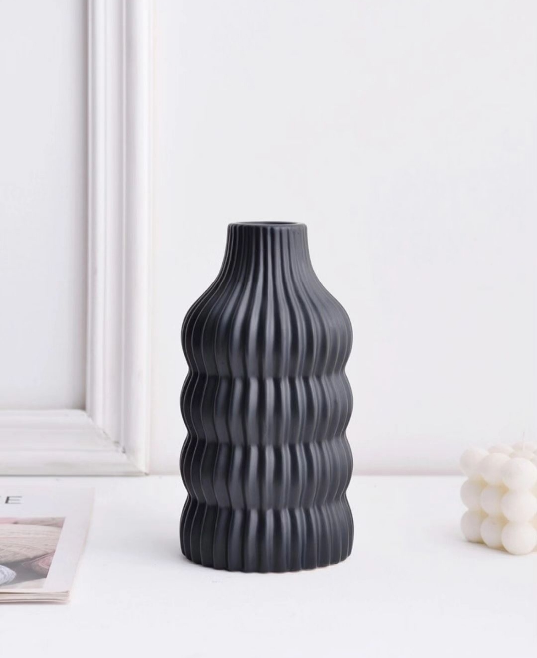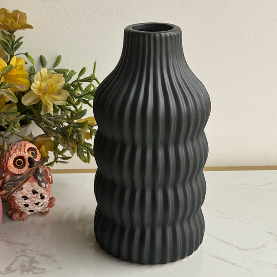 Art Street,Wave Designed Bottle shape Stripe White Flower Pot Ceramic Vase for Home Decor,Office, Living Room, Bedroom,Size (8x4 Inch)