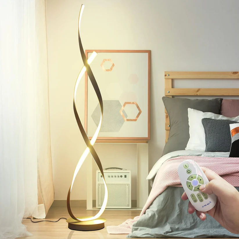 A spiraling floor light that creates a dramatic visual effect, ideal for adding personality to your interiors.