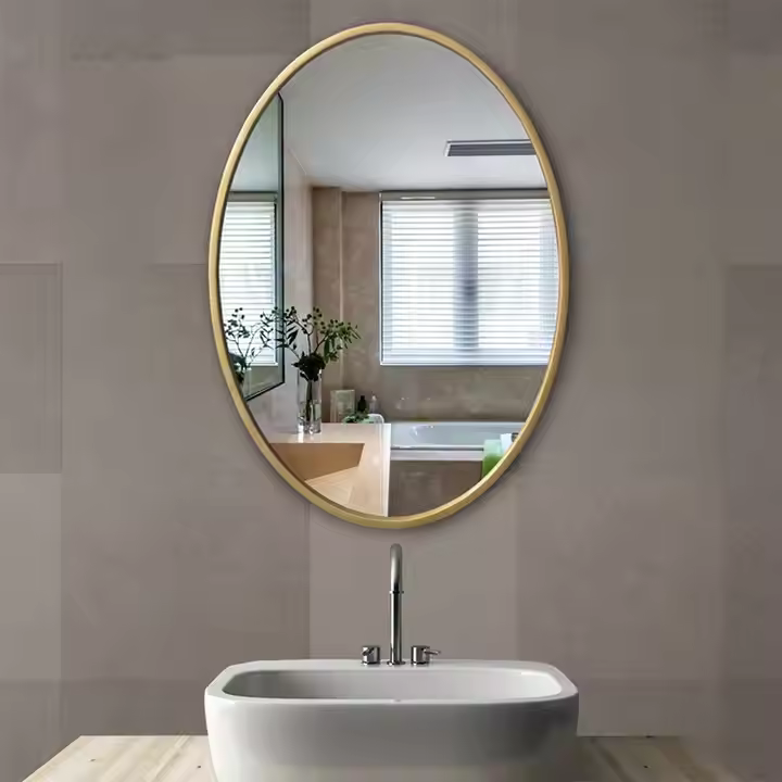 Understated and graceful, the Golden Framed Oval Vanity & Hallway Wall Mirror is the perfect blend of classic form and modern finish. Its soft oval shape framed in brushed gold makes it ideal for vanities, hallways, powder rooms, or above a console.