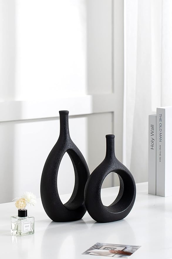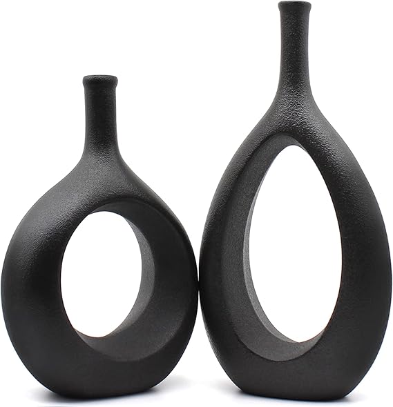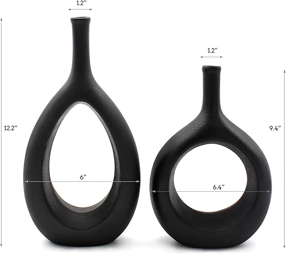 Bold form meets architectural simplicity in the Serdic Ceramic Hollow Vases Set - Black. Featuring two sculptural vases with hollow centers and geometric silhouettes, this set delivers strong contrast, clean lines, and contemporary calm.